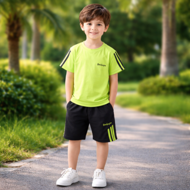 طقم ولادي مكون من تي شيرت بأكمام قصيره وشورت بتصميم جذاب