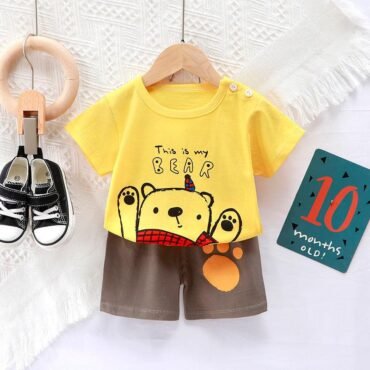 طقم اطفال صيفي قطن 100% من قطعتين تي شيرت برسوم كرتونية