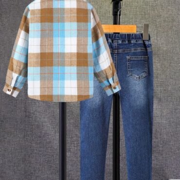 طقم ولادي مكون من قطعتين جاكيت مع قبعة وبنطلون بقبضة من الأسفل بتصميم حديث وعصري.