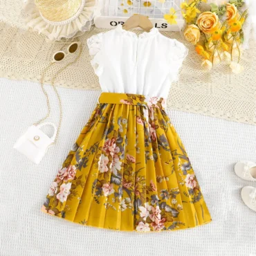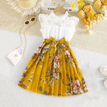 فستان بناتي مميز باكمام طويلة ونمط الورود الانيقة