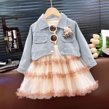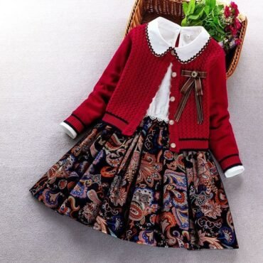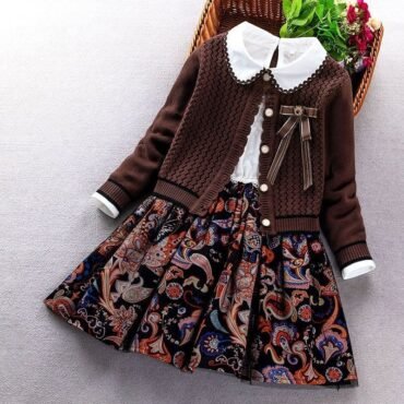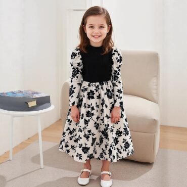 فستان بناتي مميز باكمام طويلة ونمط الورود الانيقة