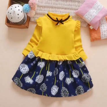 فستان بناتي مميز باكمام طويلة ونمط الورود الانيقة