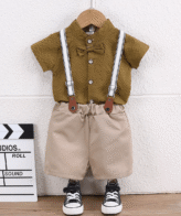 طقم شورت ولادي أنيق مكون من شميز بنمط تاج مع شورت رائع