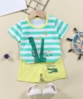 طقم ولادي انيق مكون من قطعتين تي شيرت باكمام قصيرة وشورت نمط حروف