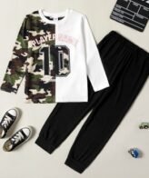 طقم ولادي مكون من قطعتين جاكيت مع قبعة وبنطلون بقبضة من الأسفل بتصميم حديث وعصري.