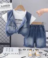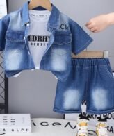 طقم ولادي مكون من قطعتين جاكيت مع قبعة وبنطلون بقبضة من الأسفل بتصميم حديث وعصري.