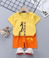 طقم ولادي انيق مكون من قطعتين تي شيرت بأكمام قصيرة وشورت نمط الزرافة للاطفال الرضع