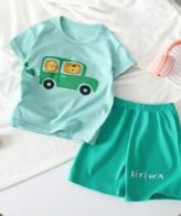 طقم شورت ولادي مكون من قطعتين تي شيرت نمط سيارة كرتونية وشورت