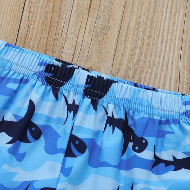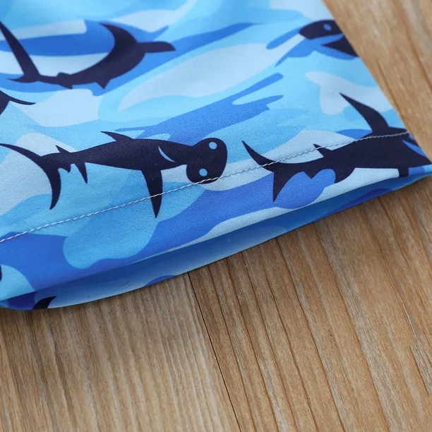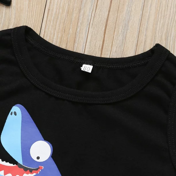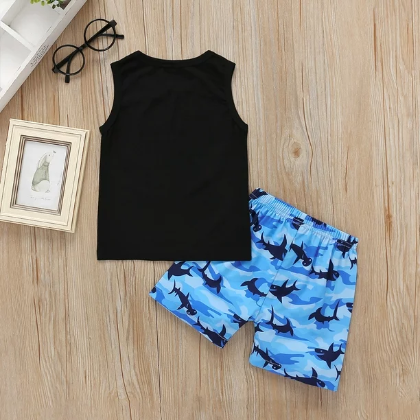 طقم ولادي راقي مكون من قطعتين تي شيرت وشورت بطباعة سمكة القرش