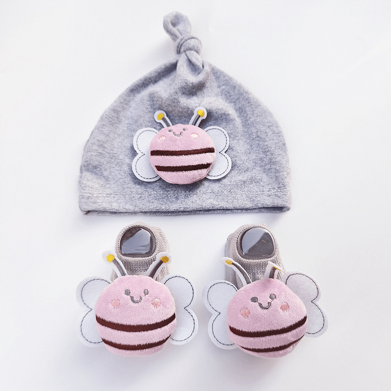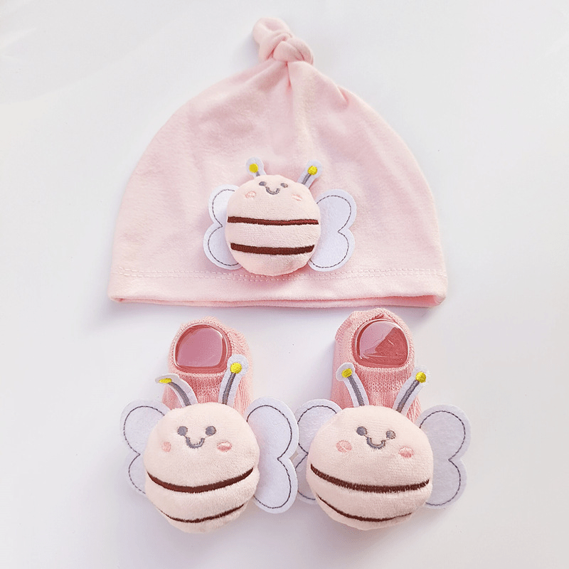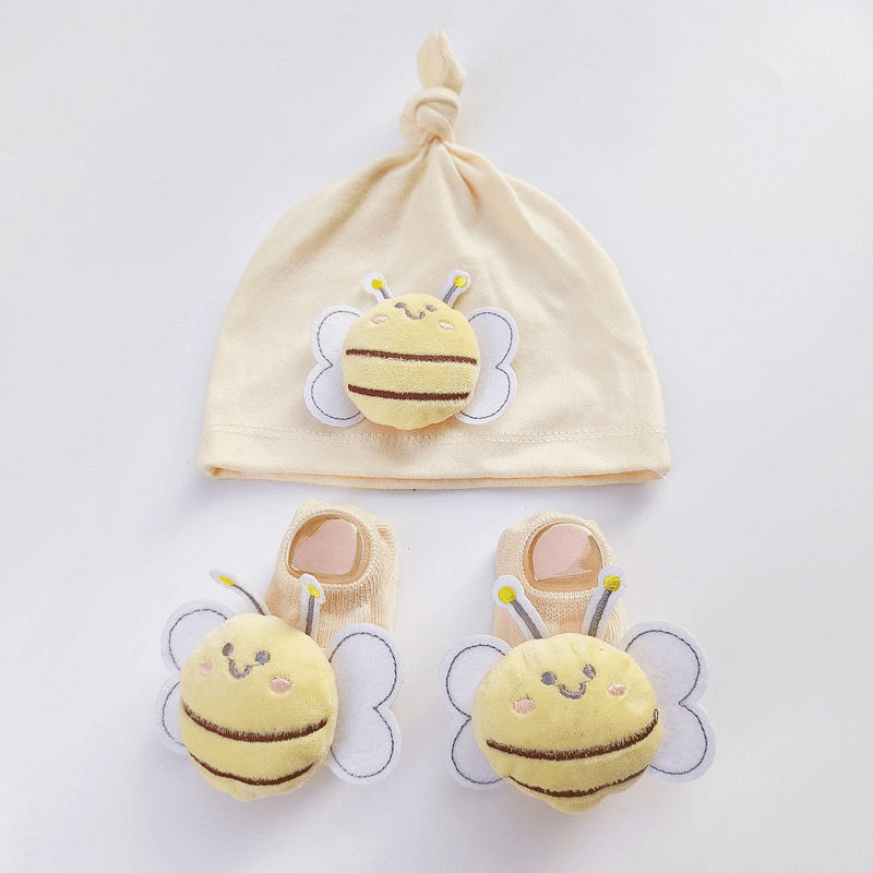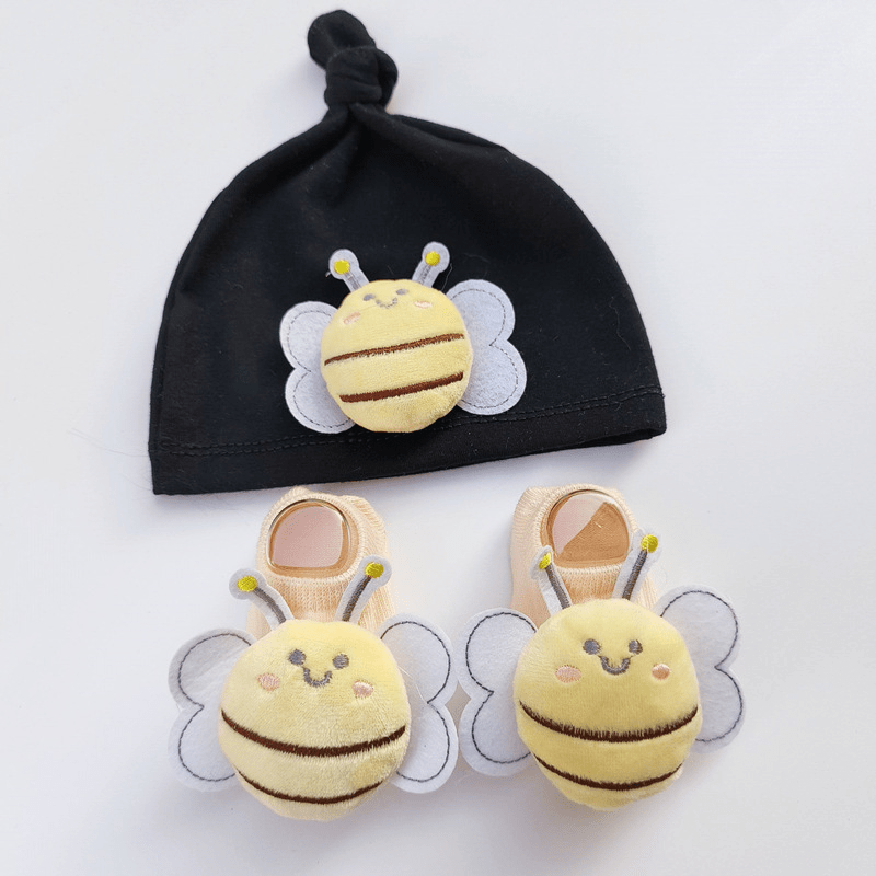 طقم قطني مكون من قبعة وجوارب بشكل النحلة