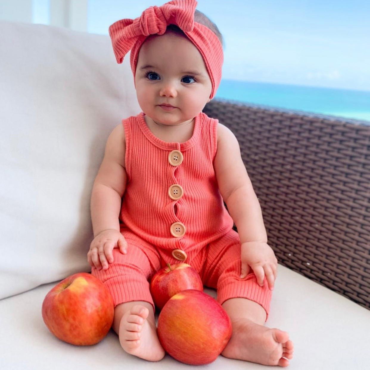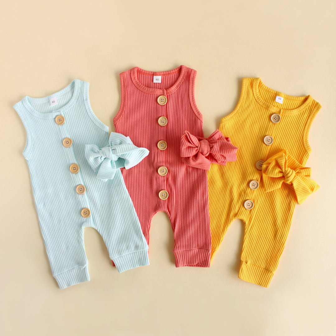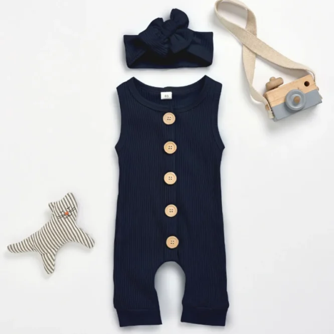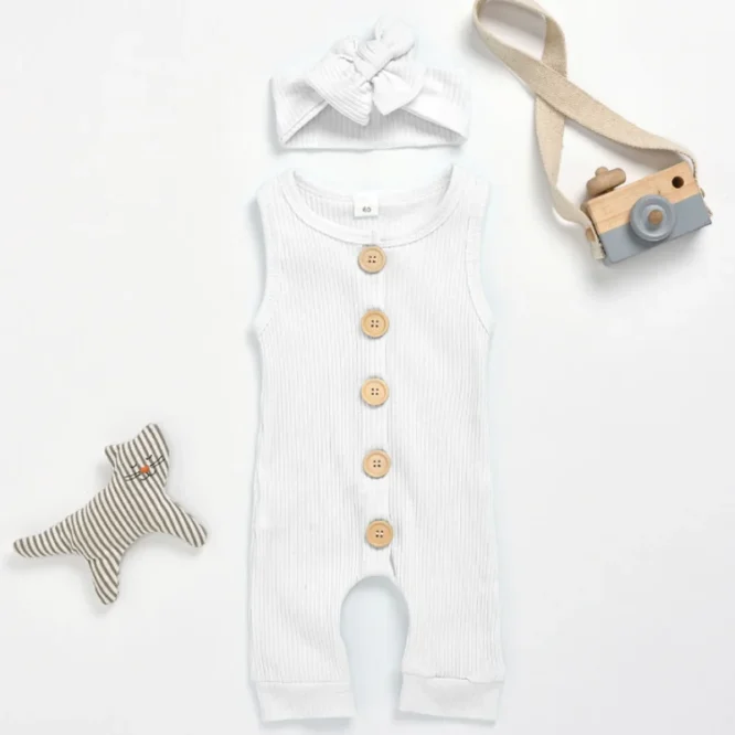 رومبير قطني بدون أكمام بأزرار أمامية مع ربطة شعر