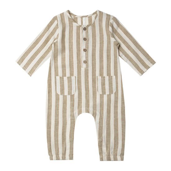 أفرول مخطط بأكمام طويلة على أزرار وجيوب أمامية للأطفال الرضع