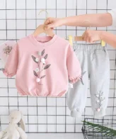 طقم بناتي فاخر يتكون من شميز بأكمام طويلة وبنطلون جينز بتصميم راقي للفتيات الصغيرات