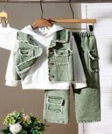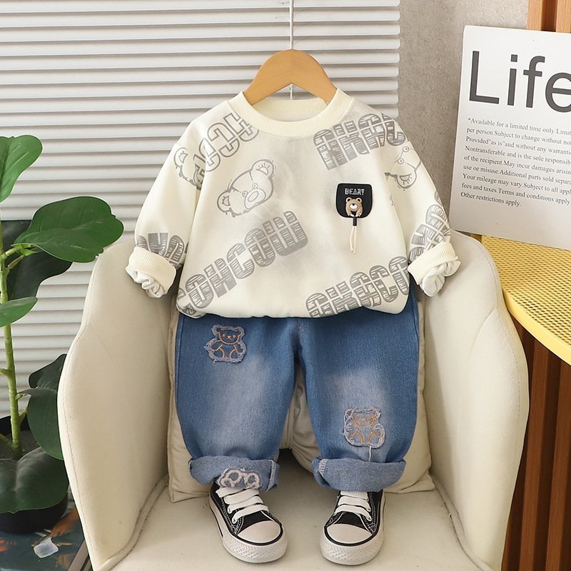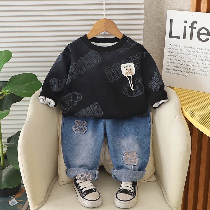 طقم ولادي يتكون من بلوفر بأكمام طويلة وبنطلون جينز للأولاد الصغار