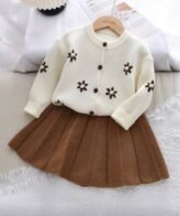 طقم بناتي يتكون من سترة بأكمام طويلة وتنورة بشكل أنيق وراقي للفتيات الصغيرات.