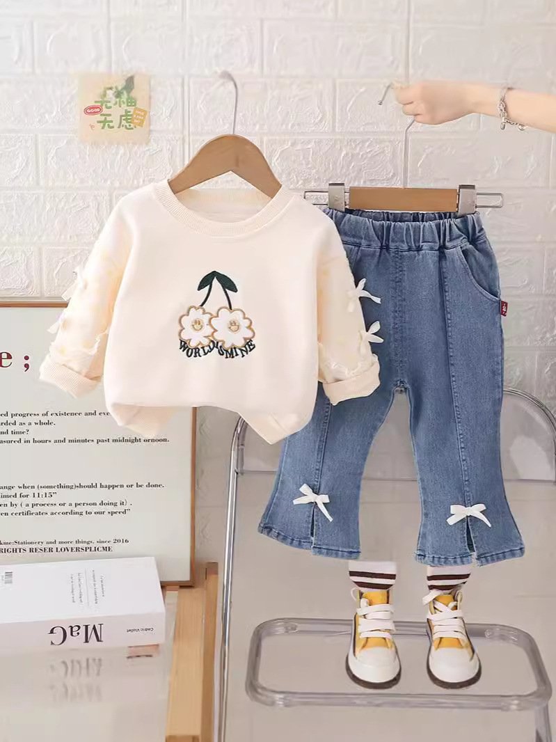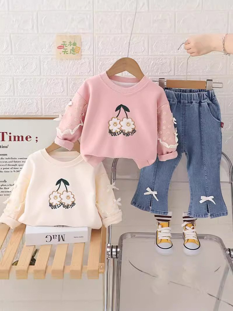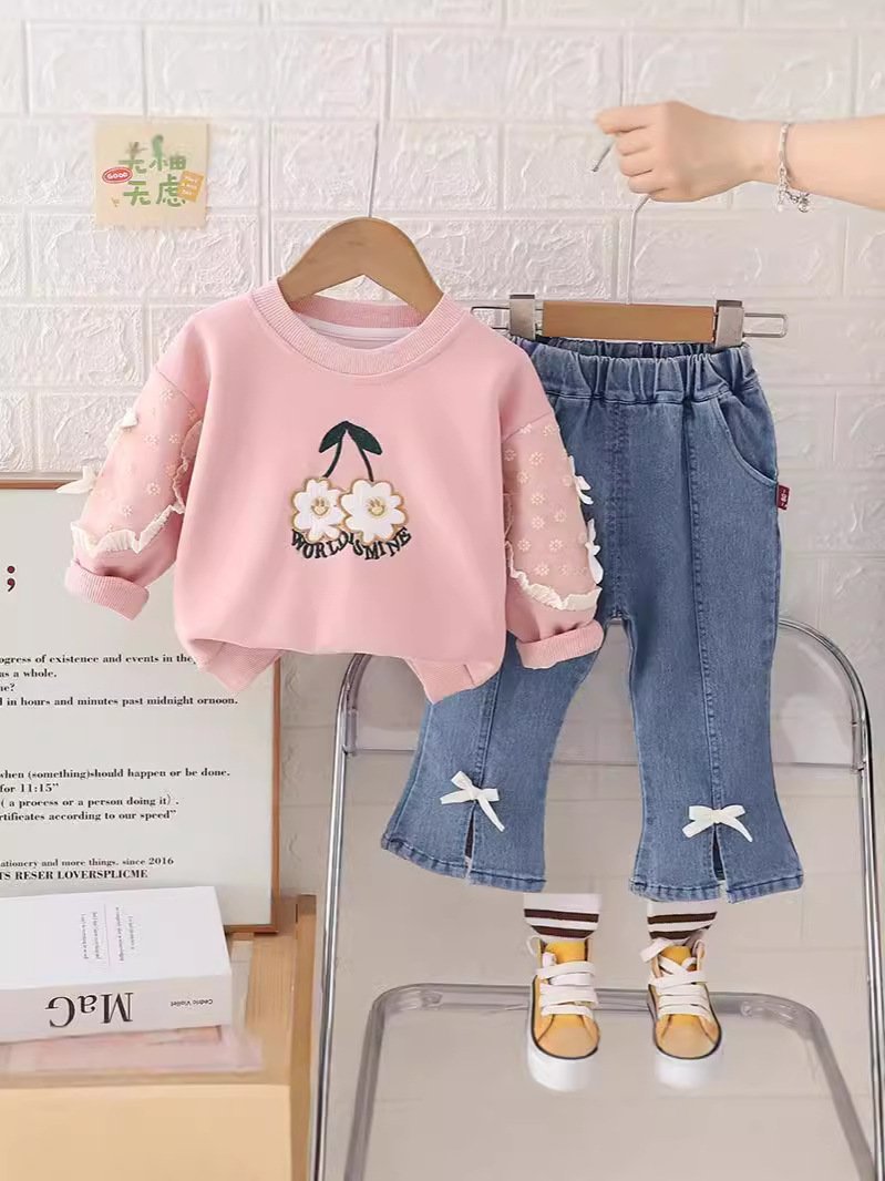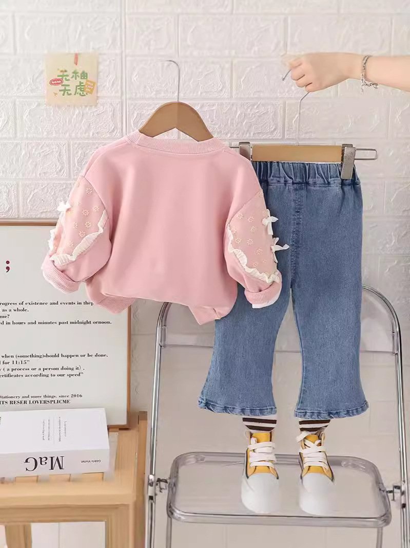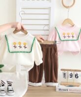 طقم بناتي راقي يتكون من بلوفر بأكمام طويلة وبنطلون للفتيات الصغيرات