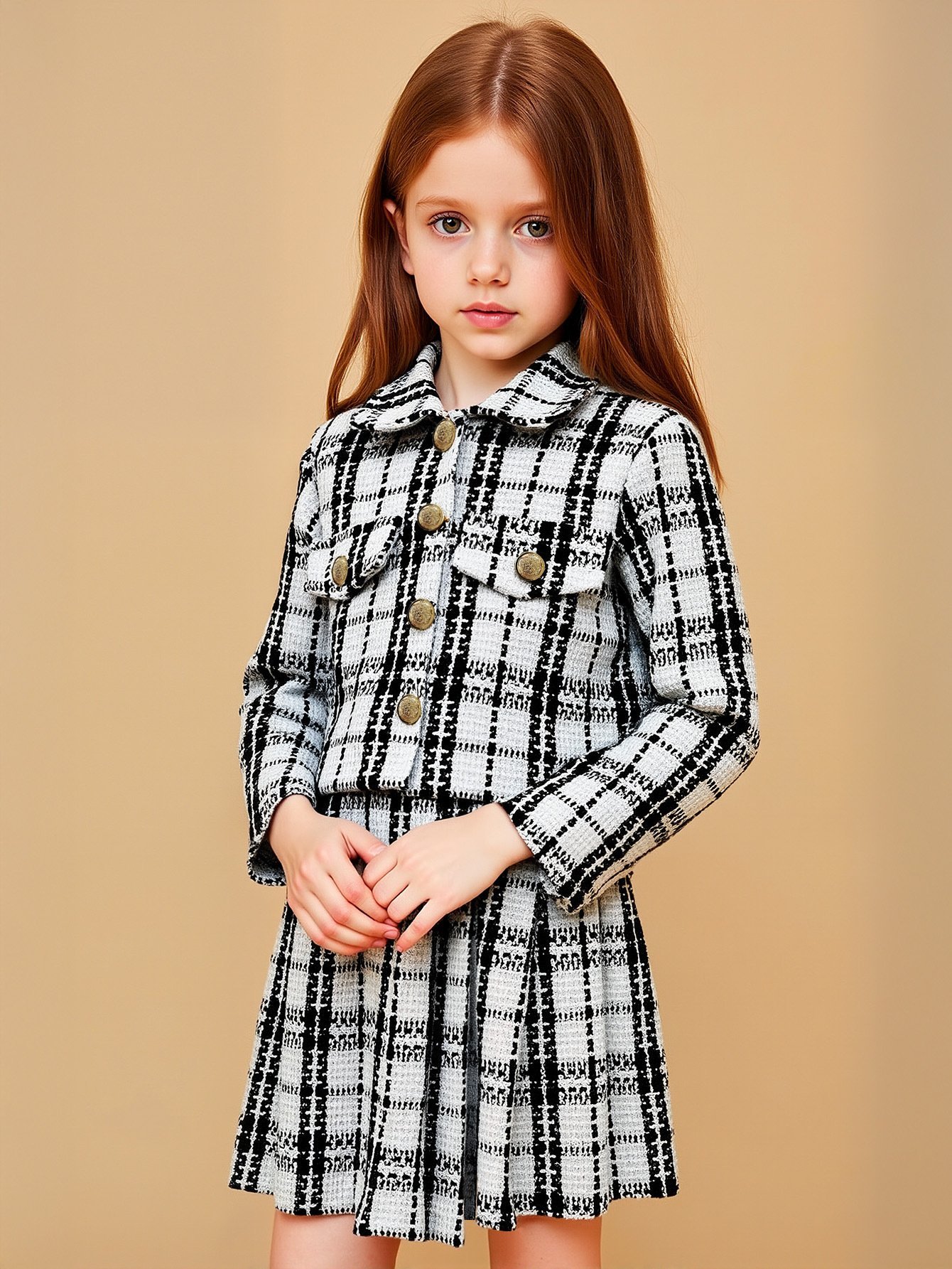 طقم بناتي يتكون من قطعتين، جاكيت بأكمام طويلة وتنورة راقية