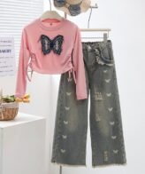طقم ولادي يتكون من قطعتين بلوفر بأكمام طويلة وبنطلون بتصميم فاخر