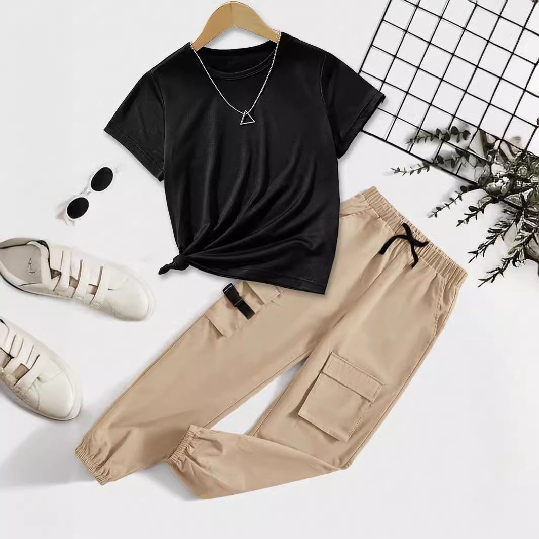 طقم بناتي مكون من تي شيرت وبنطلون