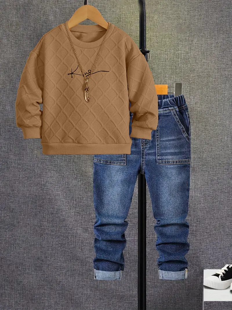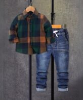 طقم ولادي فخم مكون من قطعتين مكون من فنيلة وبنطلون جينز