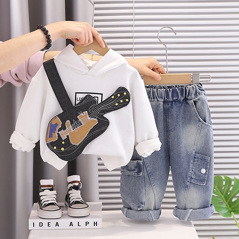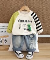 طقم ولادي يتكون من قطعتين بلوفر بأكمام طويلة وبنطلون جينز بتصميم حديث