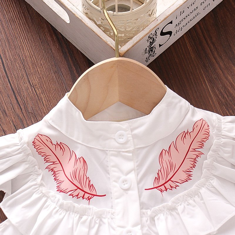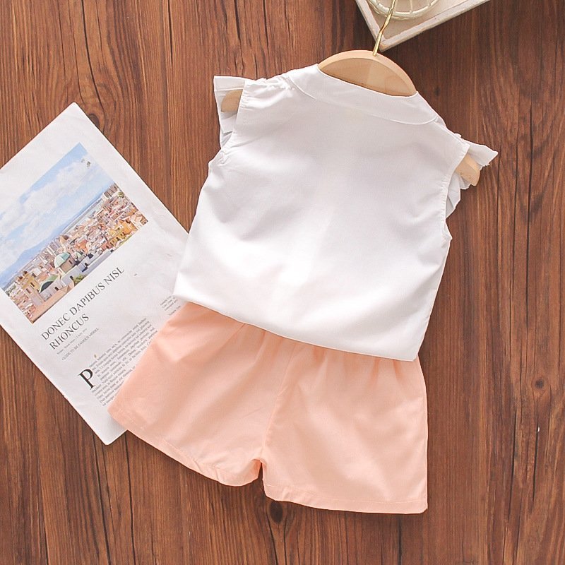 طقم بناتي يتكون من قطعتين بلوزة بدون أكمام مزينة بكشكشة على الصدر وشورت مع ربطة خصر