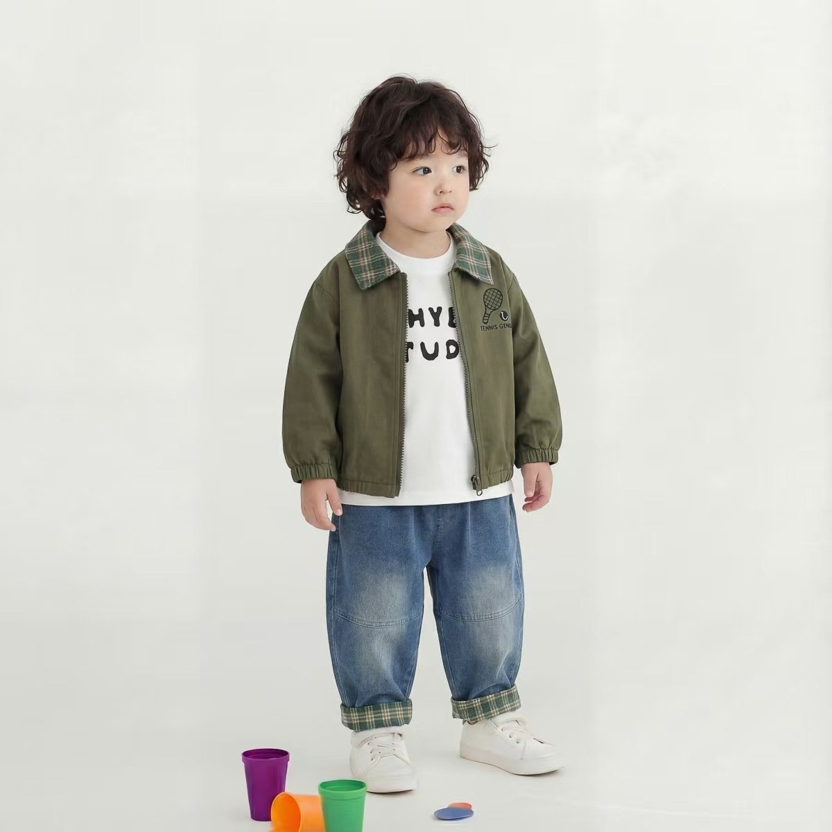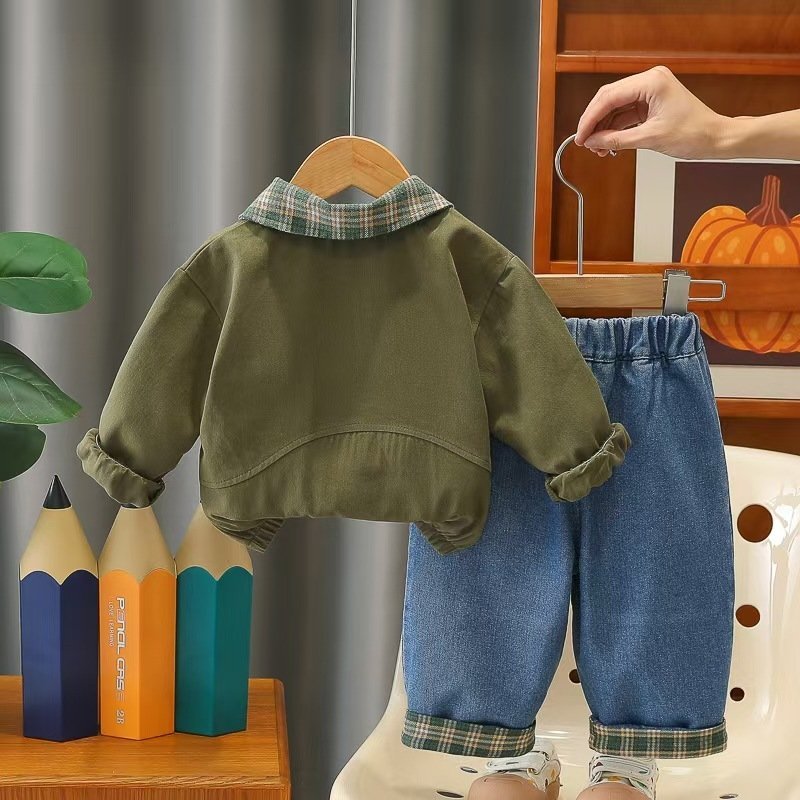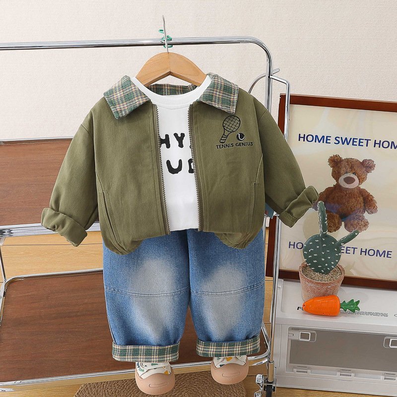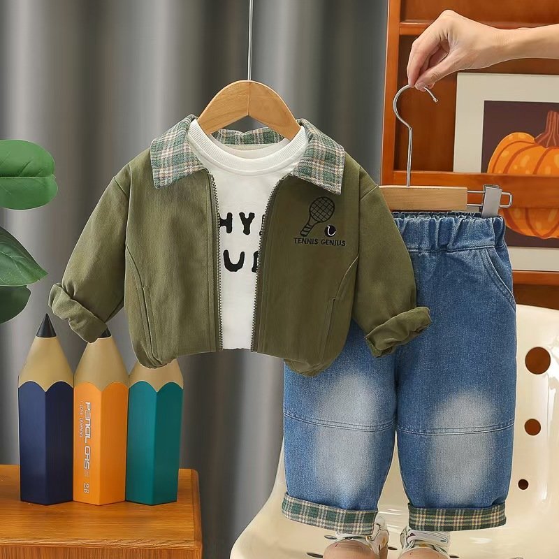 طقم ولادي يتكون من ثلاث قطع فنيلا وجاكيت بأكمام طويلة وبنطلون حينز