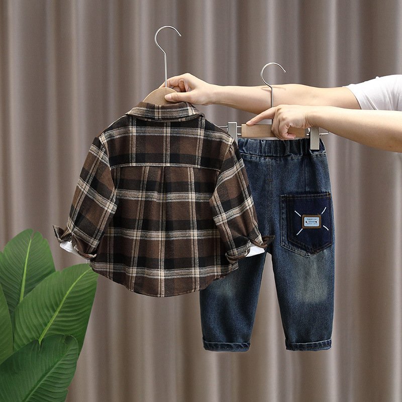طقم ولادي يتكون من قطعتين شميز بأكمام طويلة وبنطلون جينز