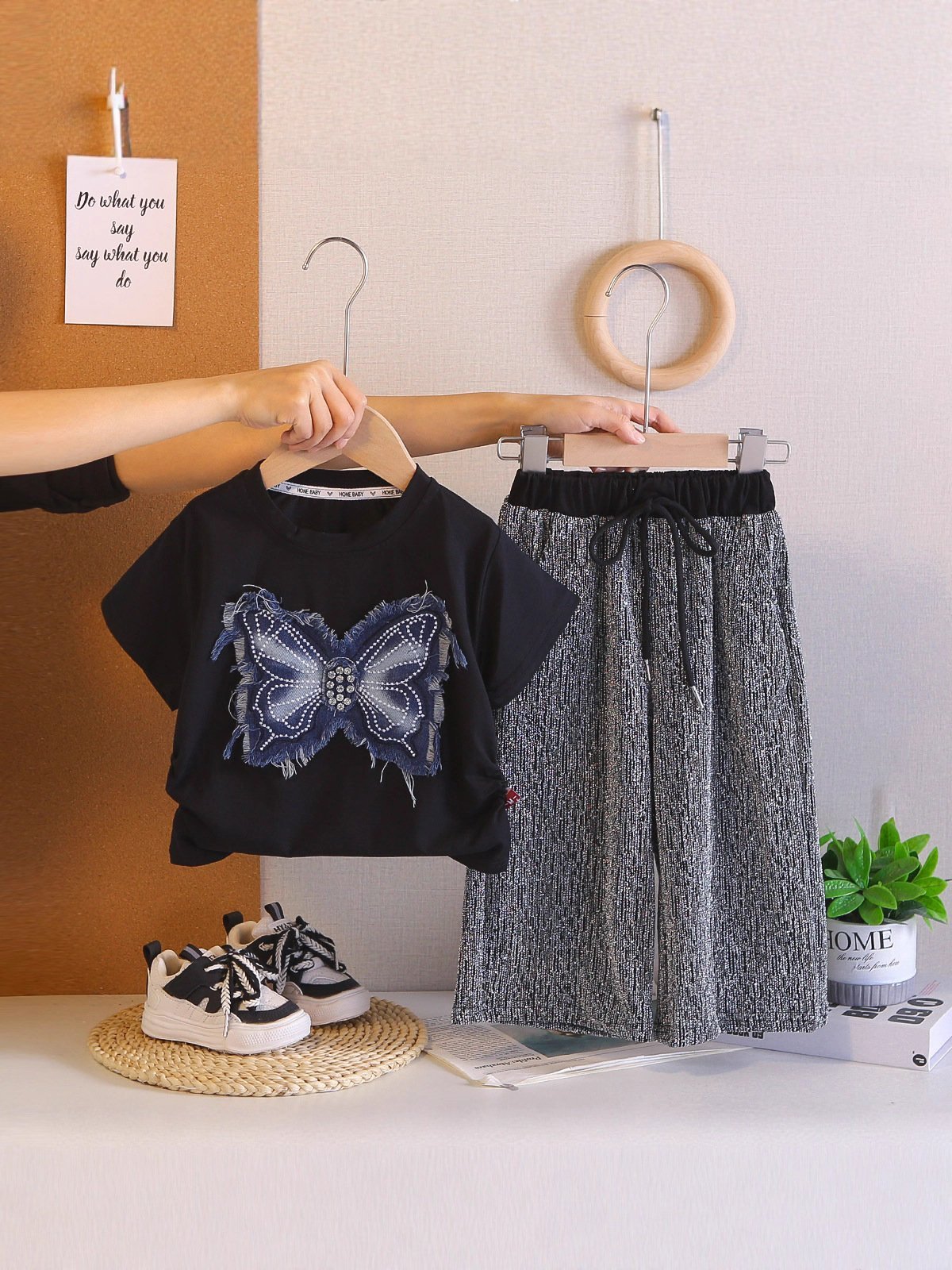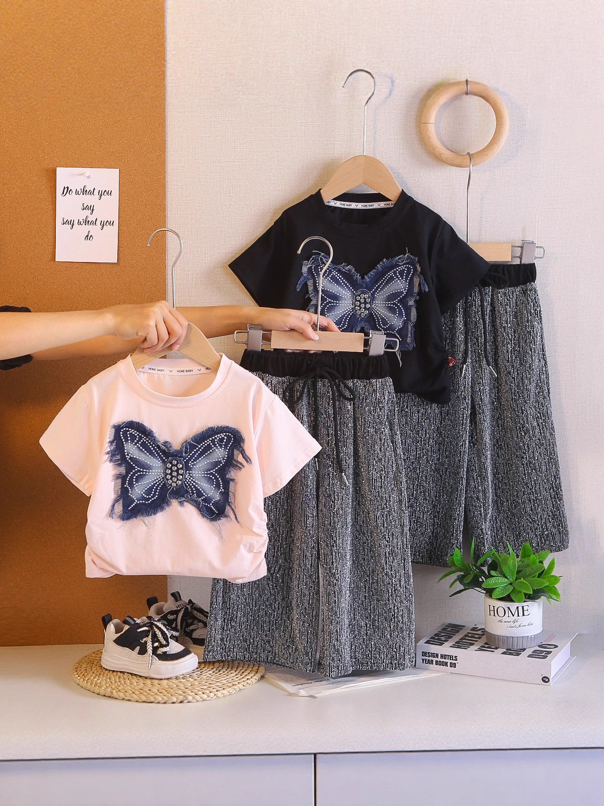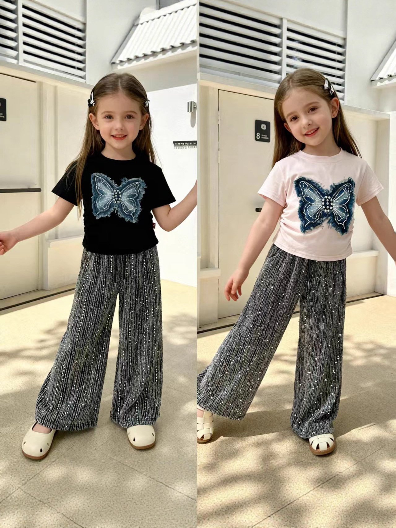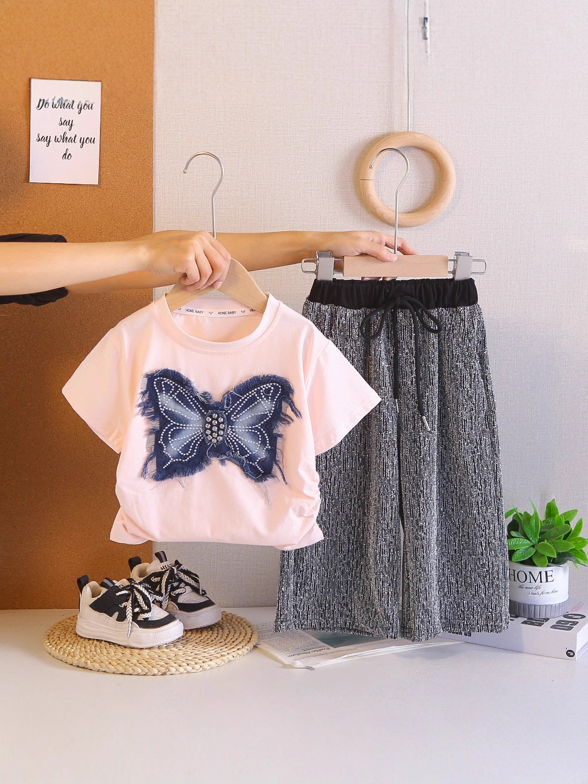 طقم بناتي مكون من بلوزه ذات اكمام قصيره وبنطلون