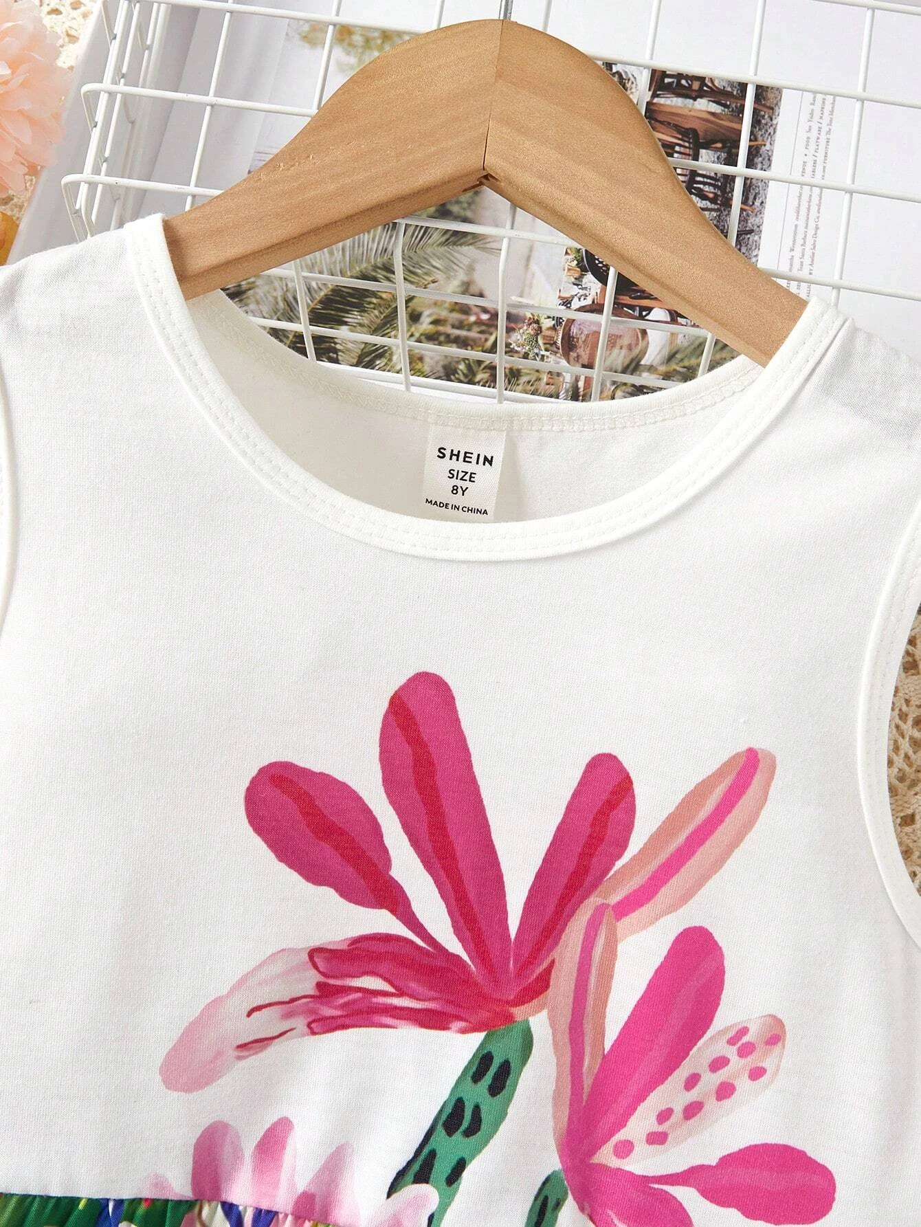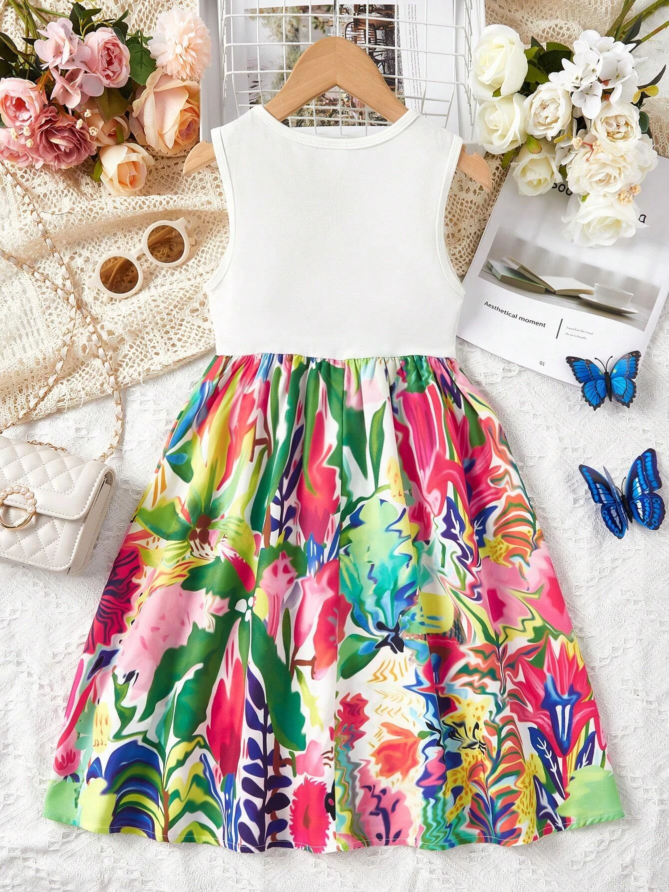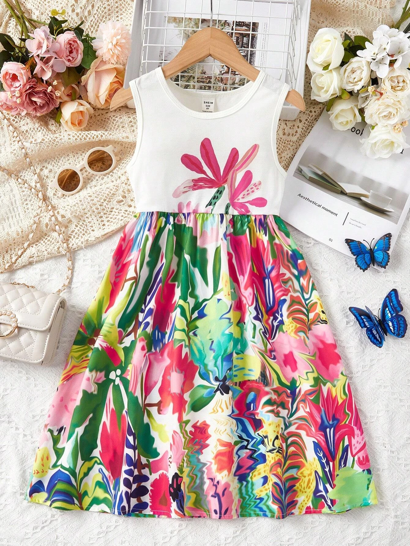 فستان راقي بدون أكمام طباعة الأزهار بناتي