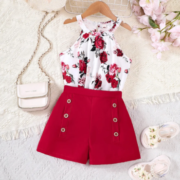 طقم بناتي مكون من بلوزه بدون اكمام وشورت بشكل جذاب