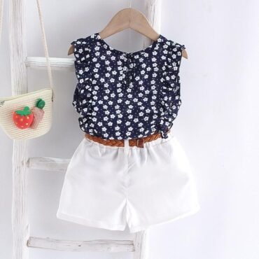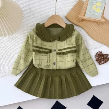 طقم بناتي يتكون من شميز بأكمام طويلة وبشكل عصري وبنطلون من الجينز الفاخر بتصميم فرنسي حديث للفتيات الصغيرات